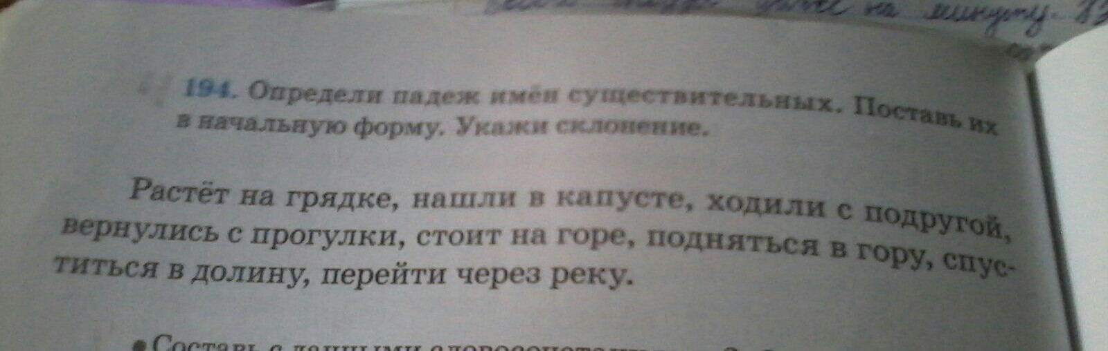 вот задание на фото невидно: определи падеж имен существительных.Поставь их в начальную форму. укожи склонение