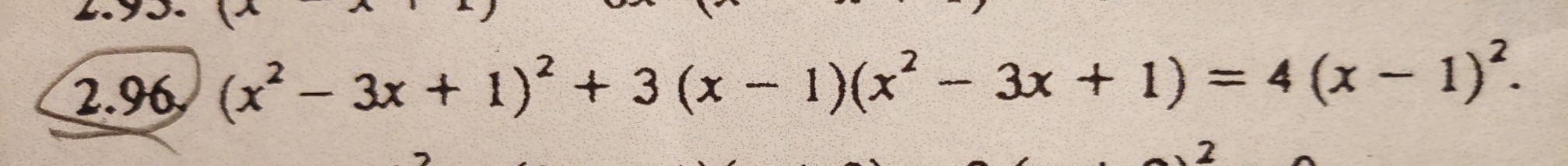 (x^2-3x+1)^2+3(x-1)(x^2-3x+1)=4(x-1)^2; |:(x-1)^2ne0; ; to ; ; xne 1\\(frac{x^2-3x+1}{x-1})^2+3cdot frac{x^2-3x+1}{x-1}-4=0; ,; ; ; t=frac{x^2-3x+1}{x-1}\\t^2-3t-4=0; ,; ; t_1=-1; ,; ; t_2=4; ; (teorema; Vieta)\\a); ; frac{x^2-3x+1}{x-1}=-1; ; ,; ; x^2-3x+1=-x+1; ,; ; x^2-2x=0; ,; x(x-2)=0; ,\\x_1=0; ,; ; x_2=2\\b); ; frac{x^2-3x+1}{x-1}=4; ,; ; x^2-3x+1=4x-4; ,; ; x^2-7x+5=0; ,\\x_1=frac{7-sqrt{29}}{2}; ,; ; x_2=frac{7+sqrt{29}}{2}; .
