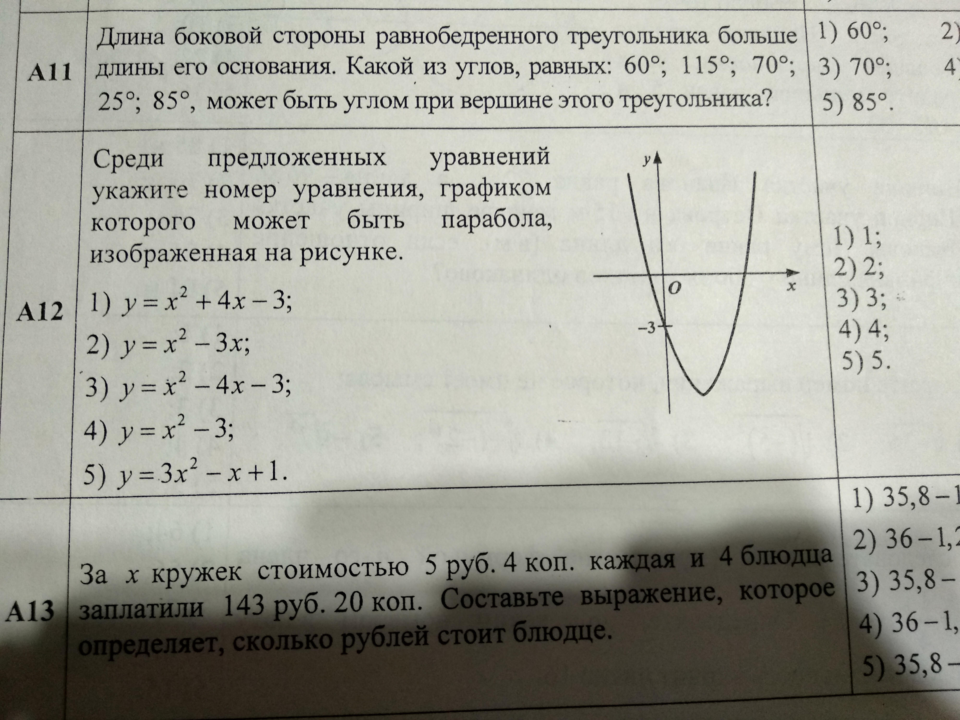 А12 ответ 4, так как -3 - это точка пересечения с осью у