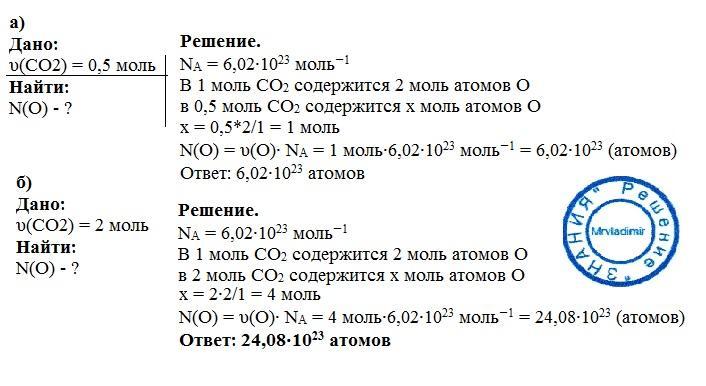 Вычислите число атомов кислорода,которое содержится в углекислом газе CO2 количеством вещества:а)0,5 моль,б)2моль