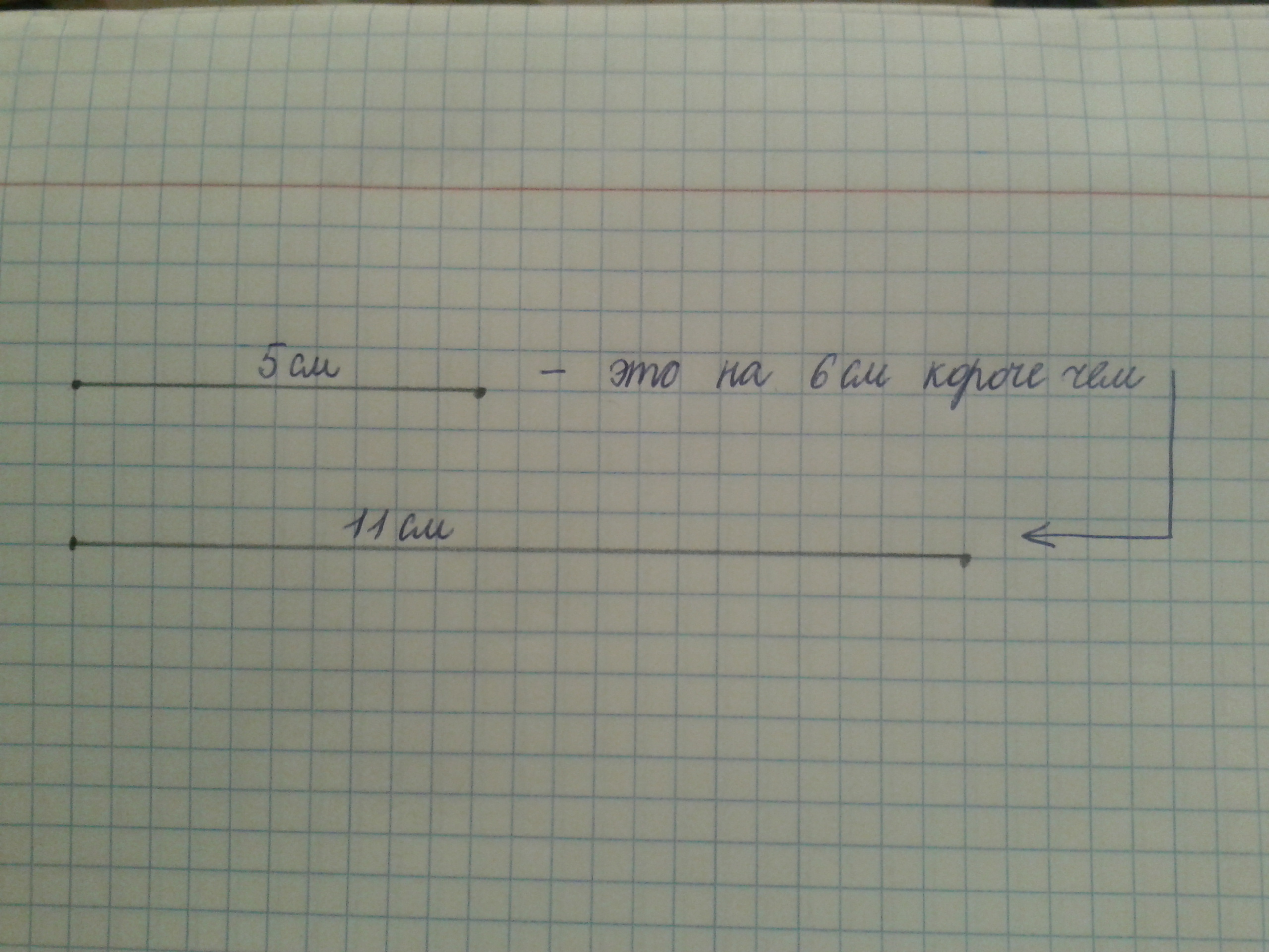 Иван начертил отрезок длиной 5 см. Это на 6 см короче длины отрезка, который нужно начертить тебе. Начерти такой отрезок.