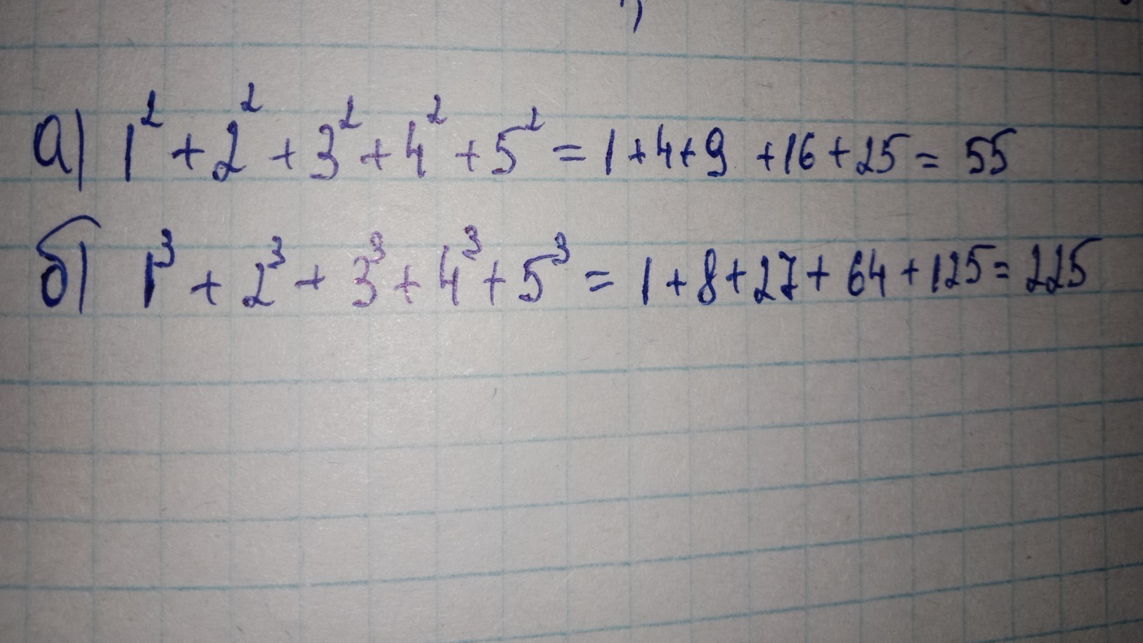 Б) 1+8+27+64+125 = 226