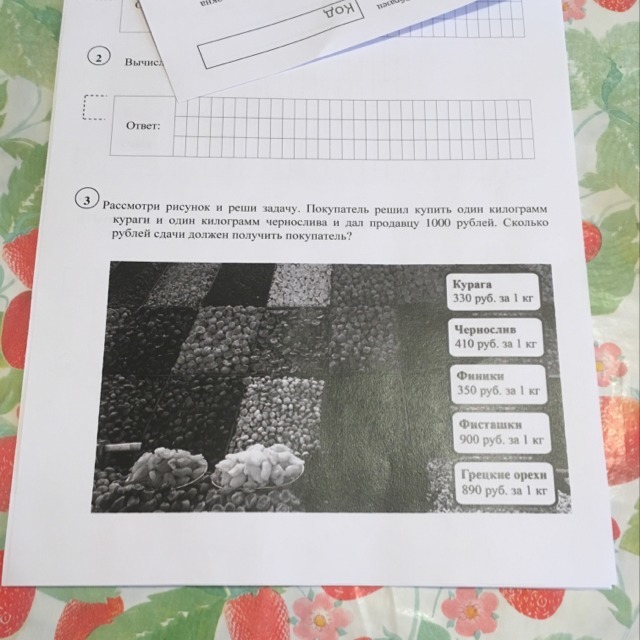 1) 330+410=740(руб.) - стоимость кураги и чернослива.