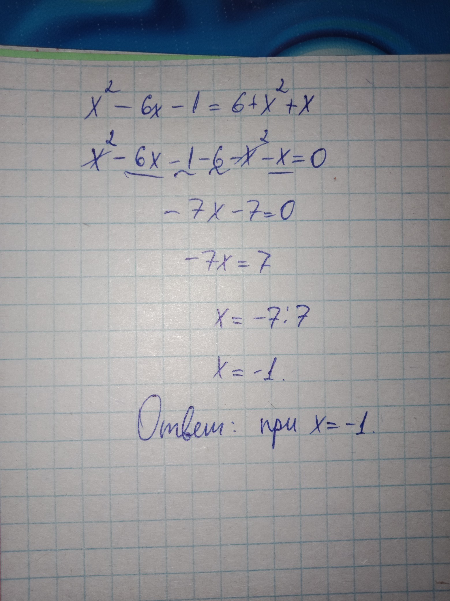 при каком значении X значение выражения X во второй степени минус 6 икс минус 1 и 6 плюс икс во второй плюс икс равны