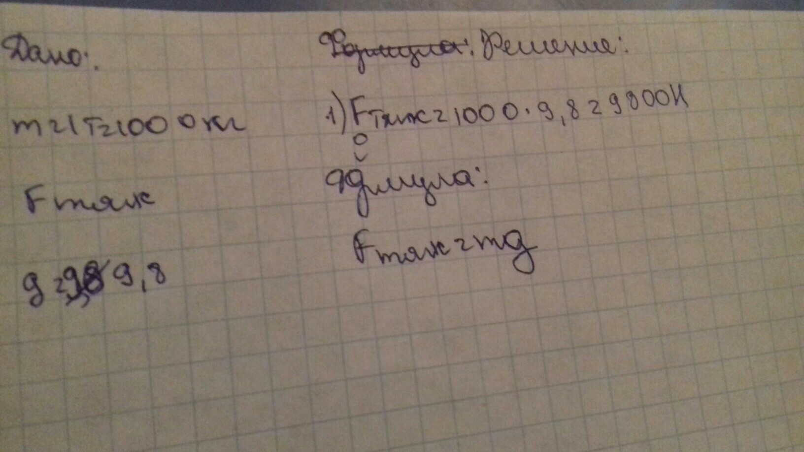 1000*10=10000; 1000 кг*10 Н/кг=10 000 Н.