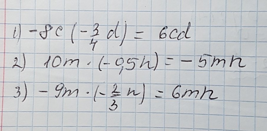 Вычисли -8с *( -3/4 d) ; 10m *( -0,5 n); -9m *( -2/3n)