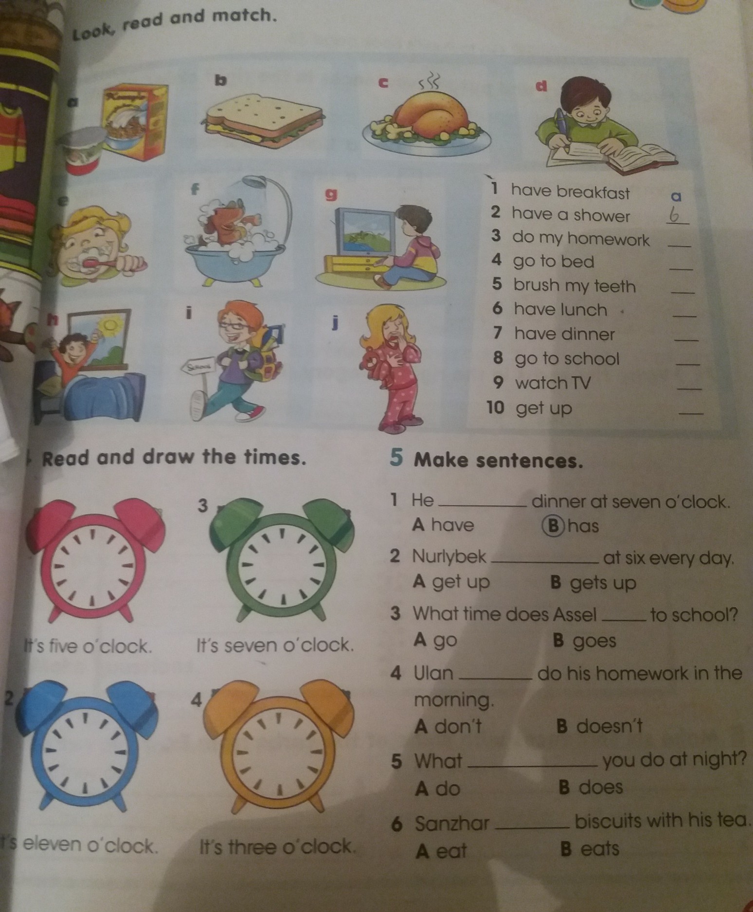 2. 1. 5:00, 2. 11:00 3. 7:00 4. 3:00