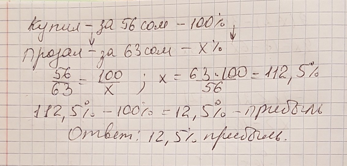 Из В Процентная доля=56=63↓=5663×100−100=566,300−100=112.5−100=12.5%