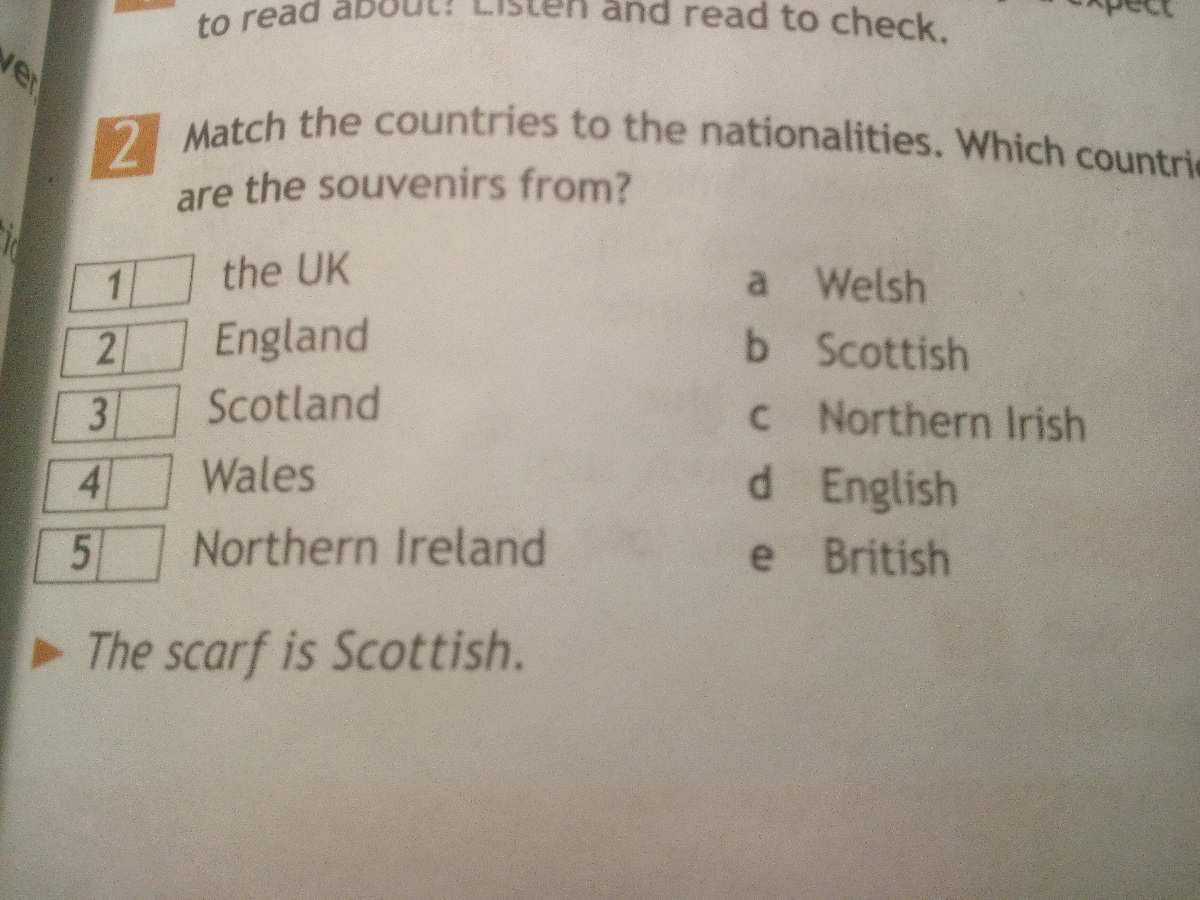 England-English, the UK-British, Scotland-Scottish, Wales-welshWales-Welsh, NothernNorthern Ireland-Northern Irish.