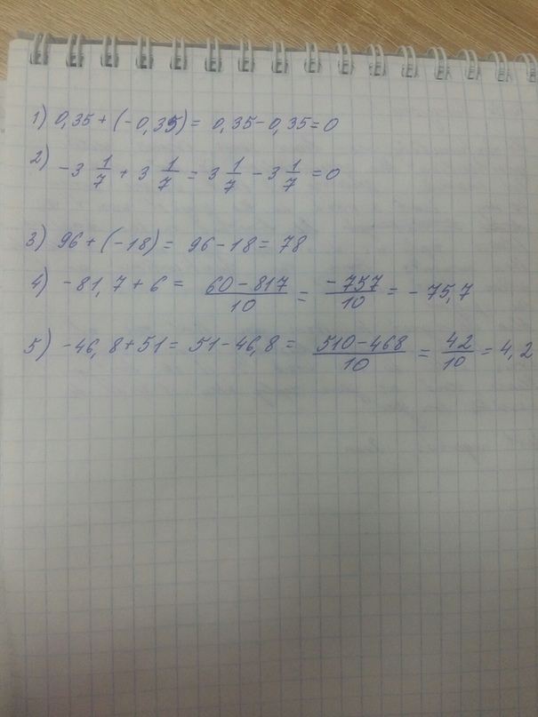 5). -46,8 + 51 = - (46,8 - 51)=4,2