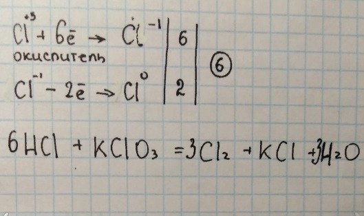 Ответ: KCLO3+6HCL=3CL2+KCL+3H2O