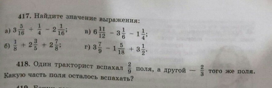 2/9+2/3=2/9+6/9=8/9 - вспахали. 2) 1-8/9=1/9 - осталось вспахать