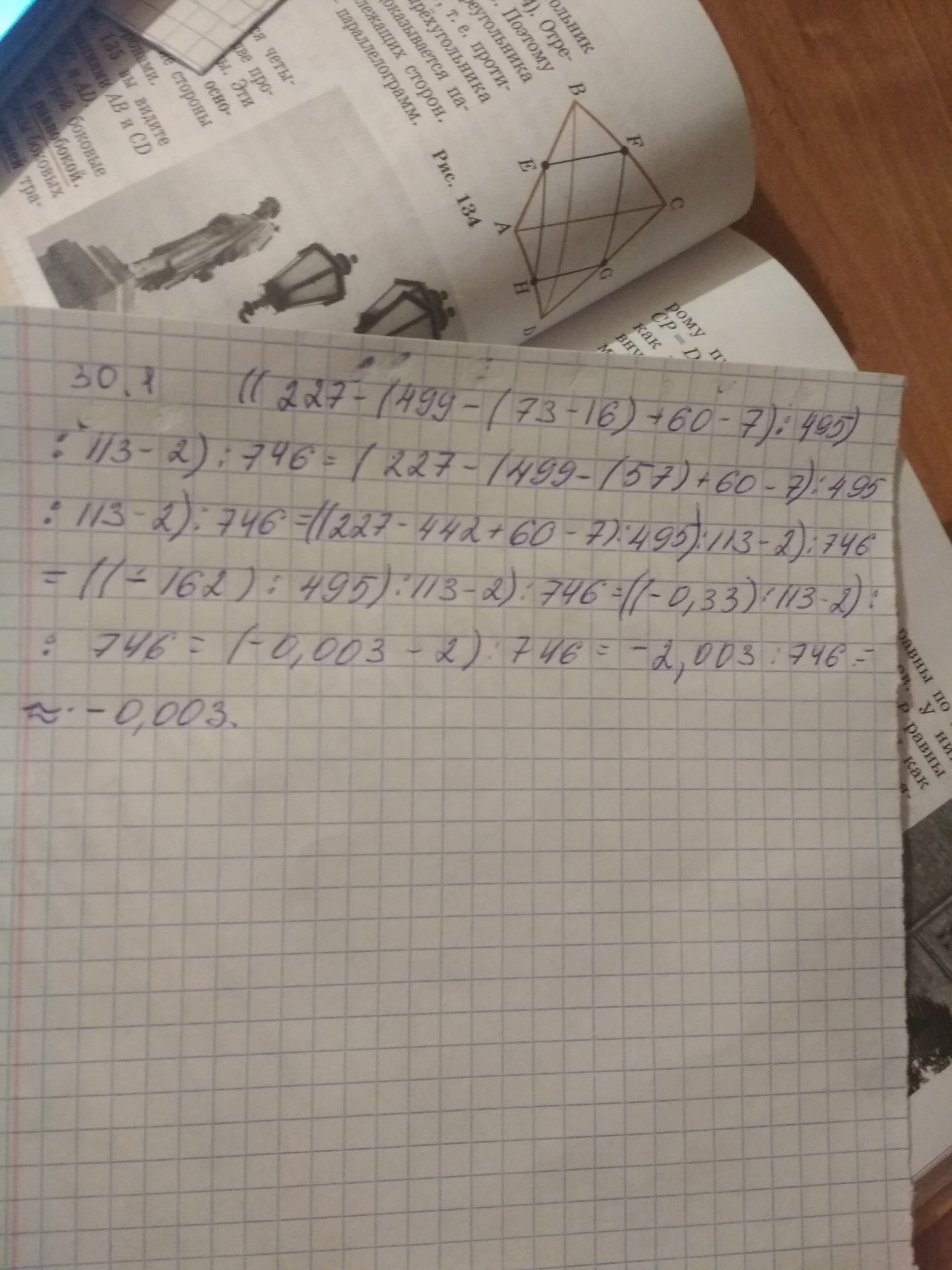 30.1 ((227-(499-(73-16)+60-7):495):113-2):746=