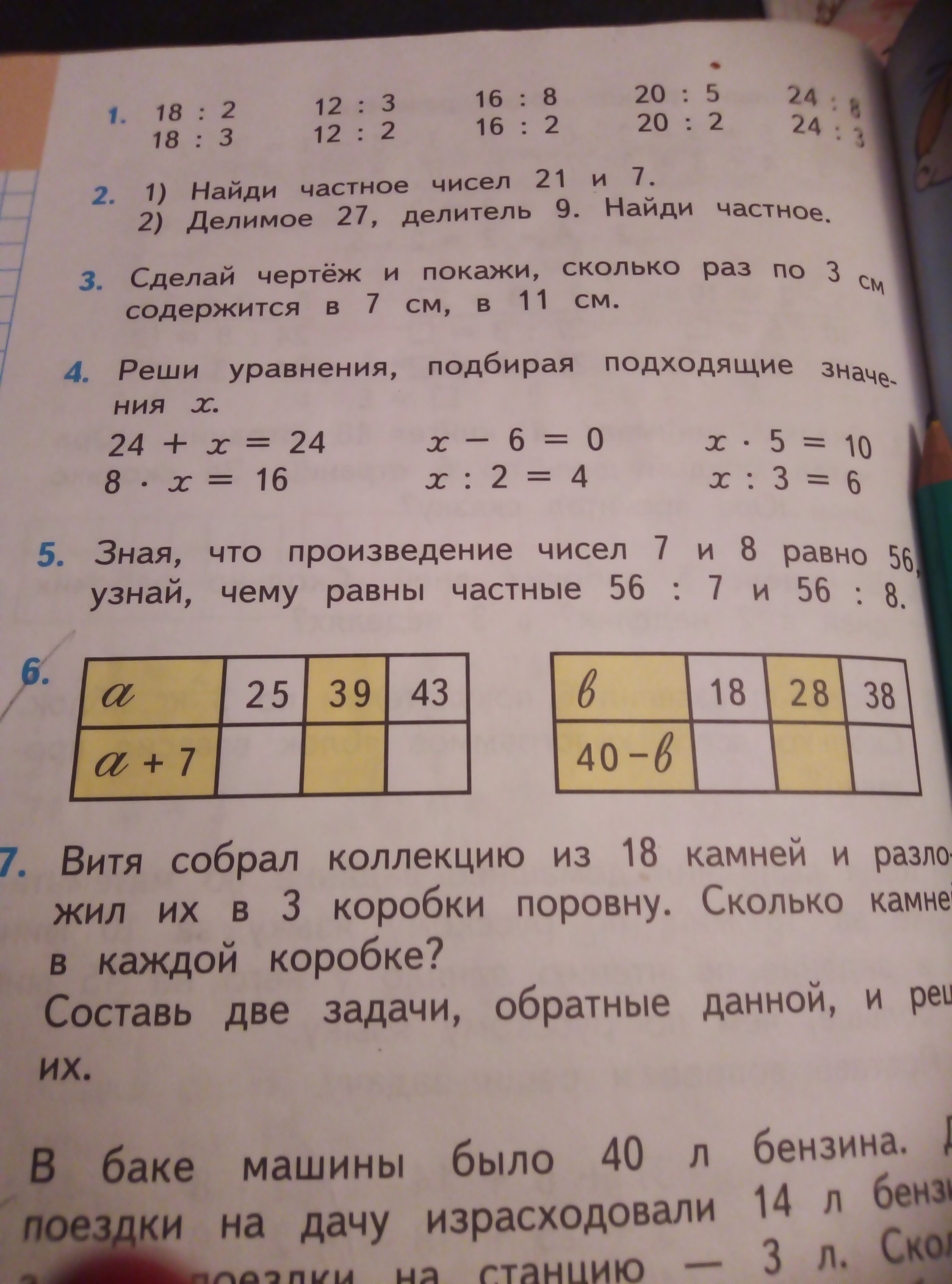 К данному числу а прибавляй 7, а во второй таблице от 40 отнимай данное число в