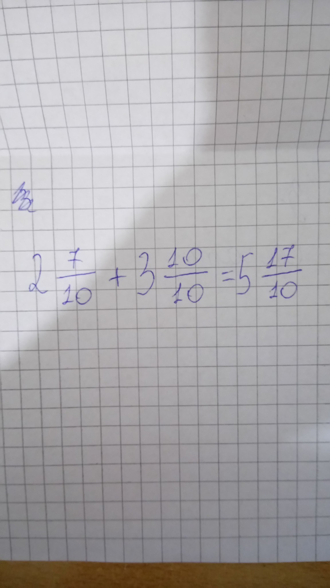 Или переводим в неправильную дробь получаем 27/10 + 40/10= 67/10=6,7