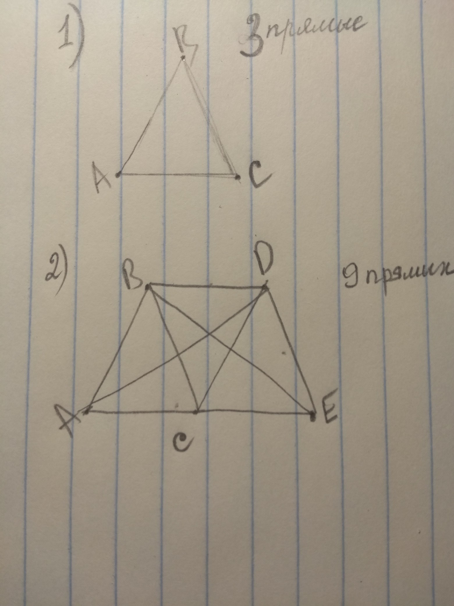 1) Ответ: через 3 точки проходят 3 различные прямые