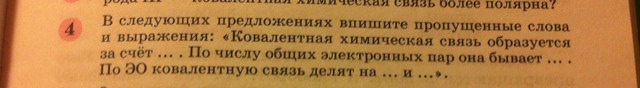 ковалентная химическая связь образуется за счет общих электронных пар элементов - неметаллов. По числу общих электронных пар она бывает одинарной, двойной и тройной. По электроотрицательности ковалентную связь делят на полярную и неполярную.