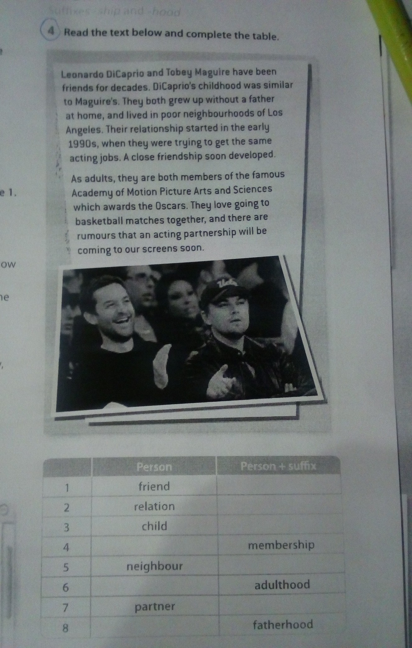 friend-friendship; relation-relationship; child-childhood; member-membership; neighbour-neighbourhood; partner-partnership; father-fatherhood.