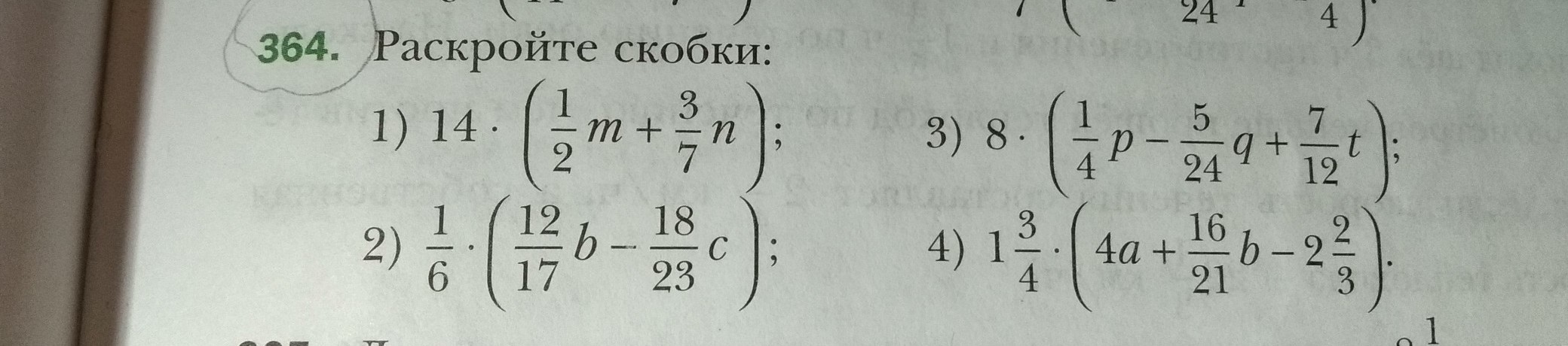8*(1/4p-5/24q+7/12t)=8*1/4p-8*5/25q+8*7/12t)= 2p-5/3q+2*7/3t=2p-1 2/3q+14/3p=2p-1 2/3q+4 2/3p