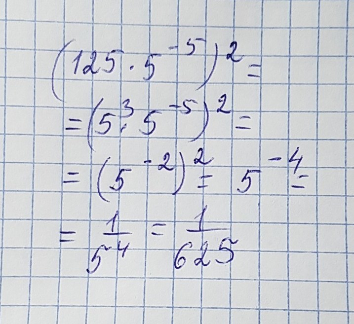 (125×5^-5)^2=?????? Помогите пожалуйста буду очень благодарен??????????????????