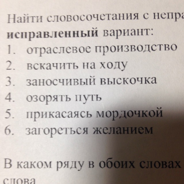 Найти словосочетания с неправильным написанием слов, записать в тетрадь исправленные варианты(всё с/о на фото)