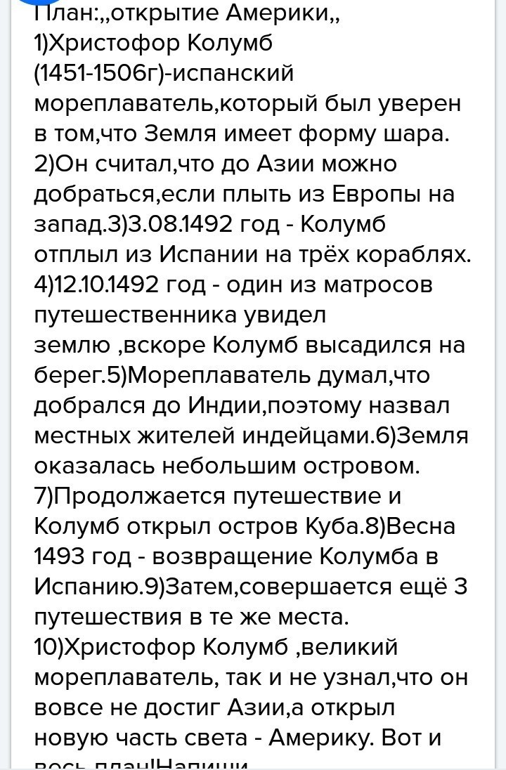 Напишите развернутый план ответа по теме "Открытие Америки".