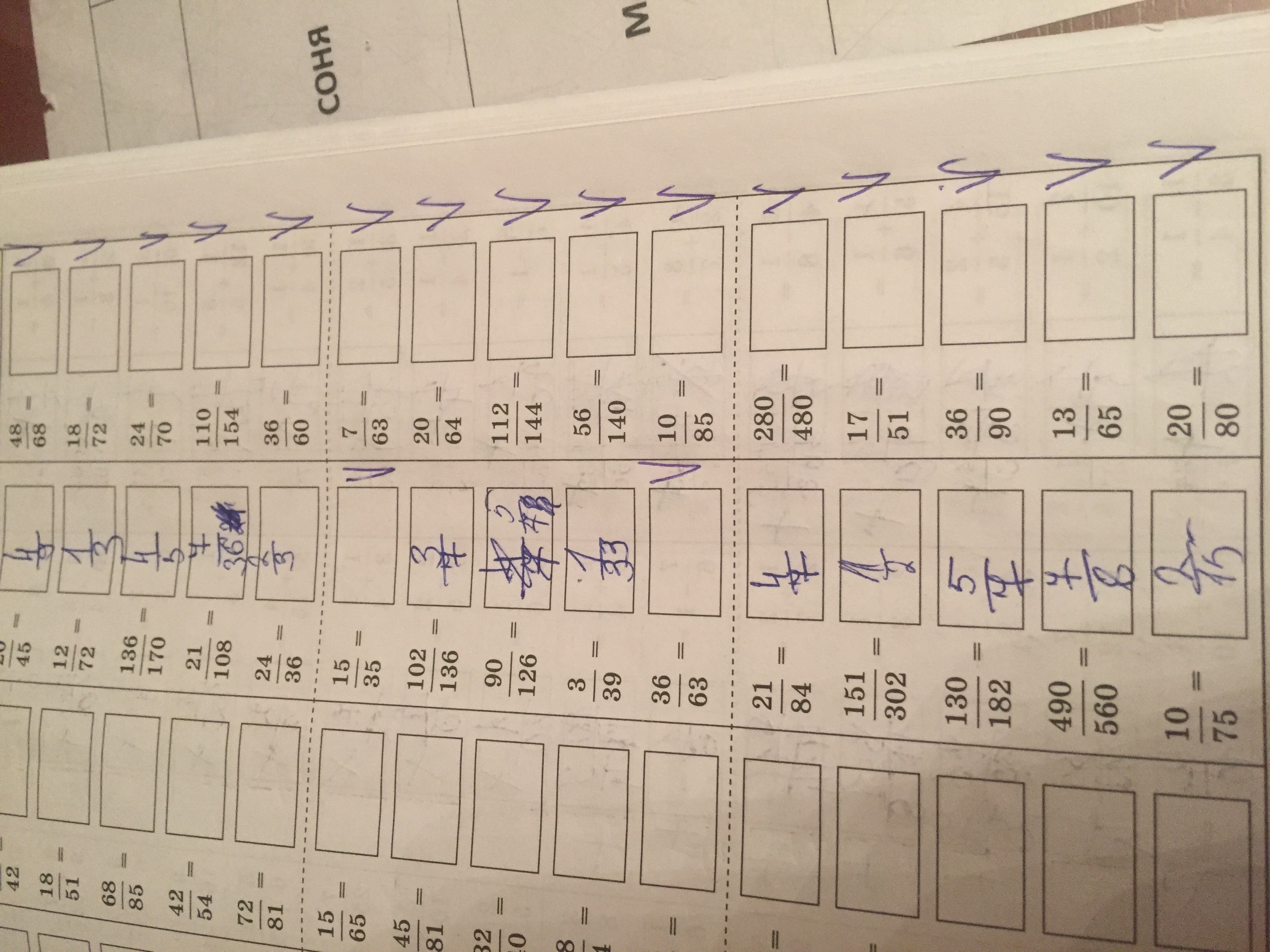 36/63=4/7; 15/35 = 3/7 ; 48/68=12/17 ; 18/72 = 1/4 ; 24/70=12/35 ; 110/54=5/7; 36/60=3/5; 7/63=1/9; 20/64 =5/16; 112/144= 7/9 ; 56/140=14/35; 10/85= 2/17 ; 280/480=7/12; 17/51 = 1/3; 36/90 = 4/10; 13/65=1/5; 20/80=