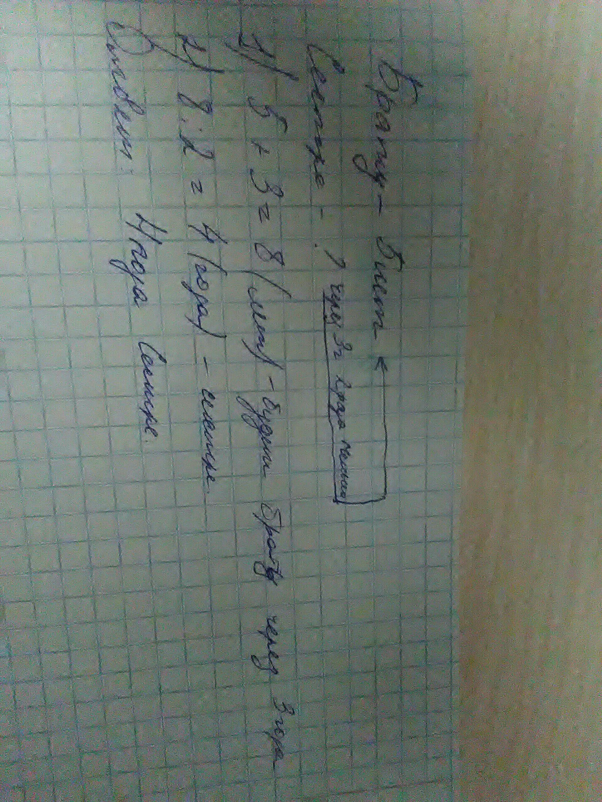 Задача: Сейчас Брату 5 лет,а через 3 года будет в 2 раза меньше лет чем сестре.Сколько лет сестре сейчас?