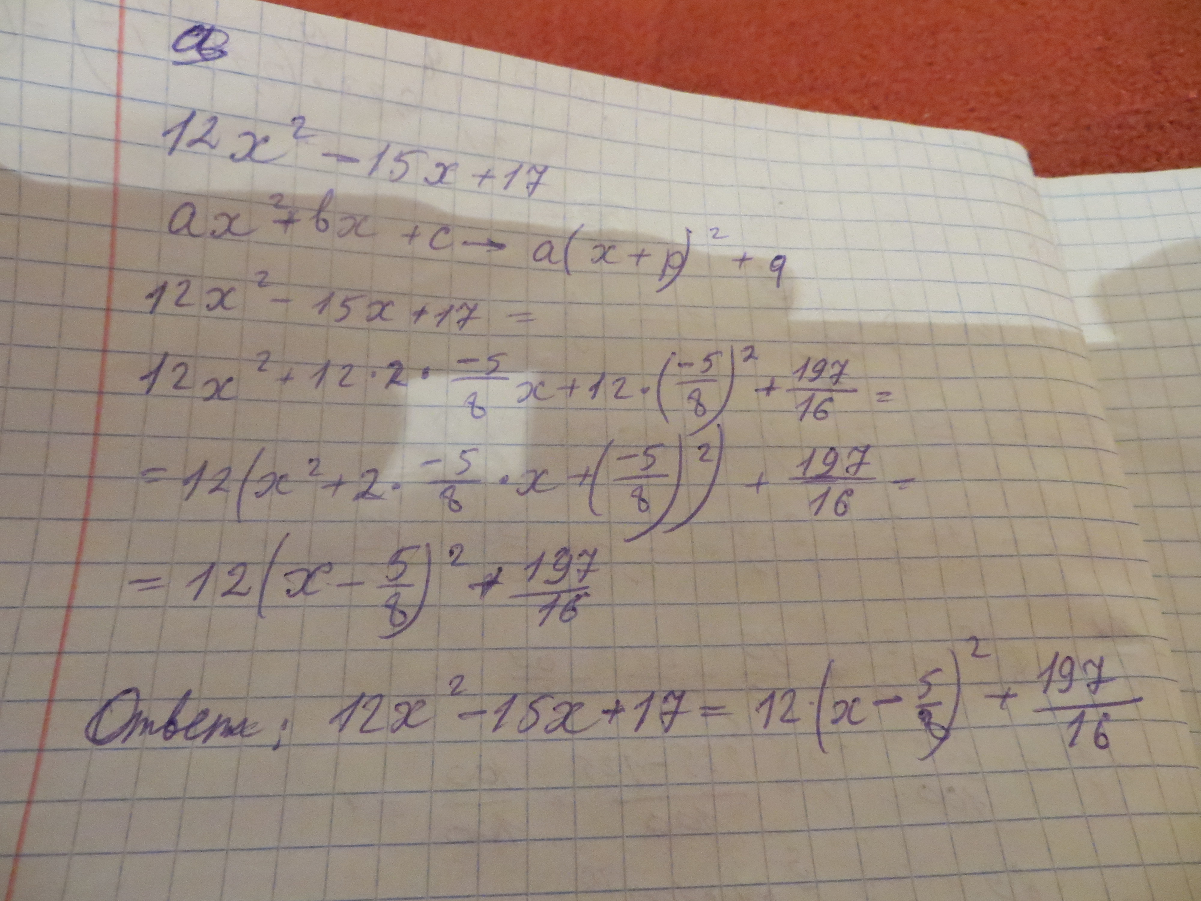 a(x+p)(x+q), т.к. квадратное уравнение 12x2−15x+17=0