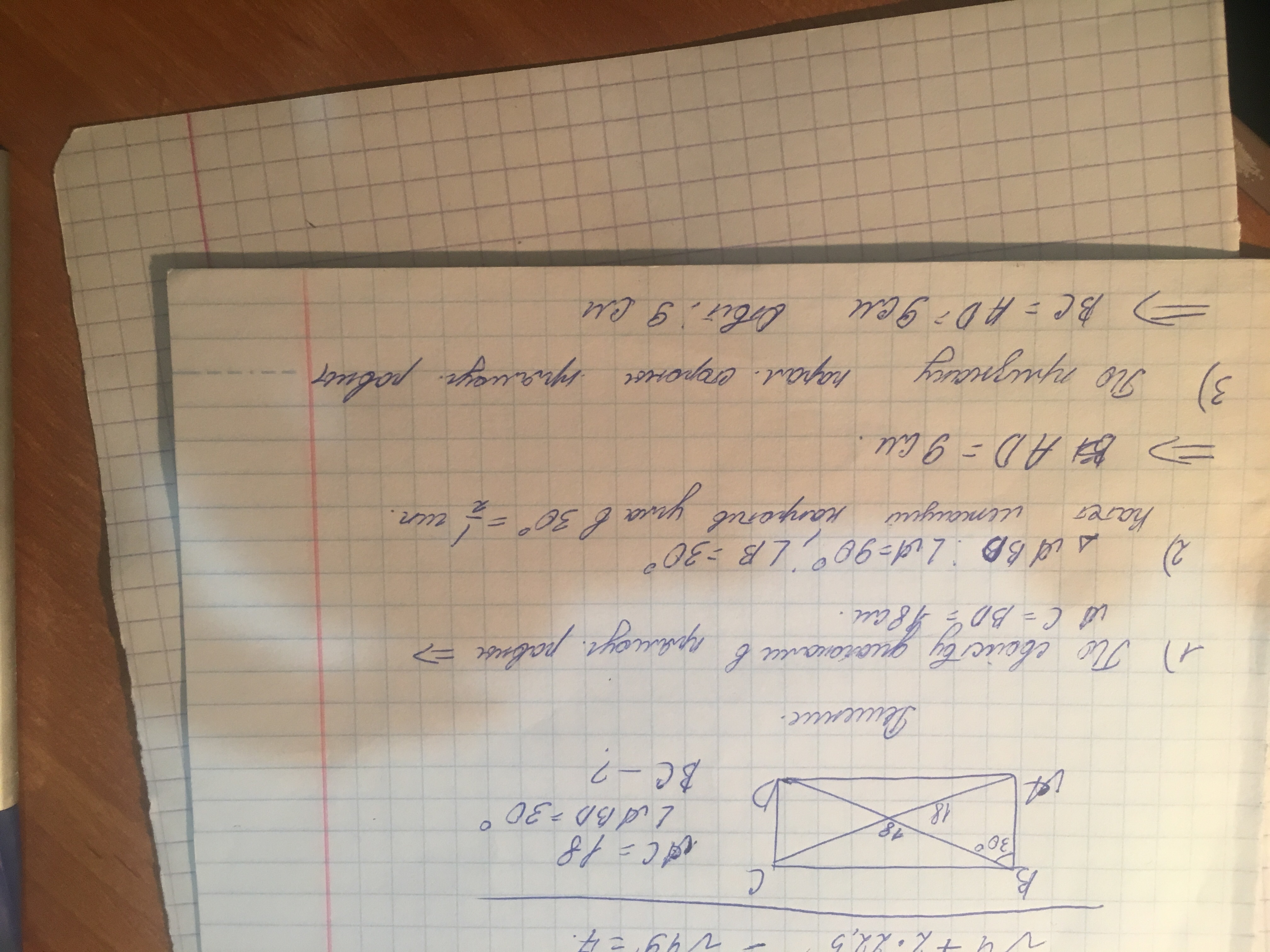 В прямоугольнике ABCD с диагоналями AC и BD ,найдите отрезок BC, если AC=18 см., а угол ABD=30 градусам