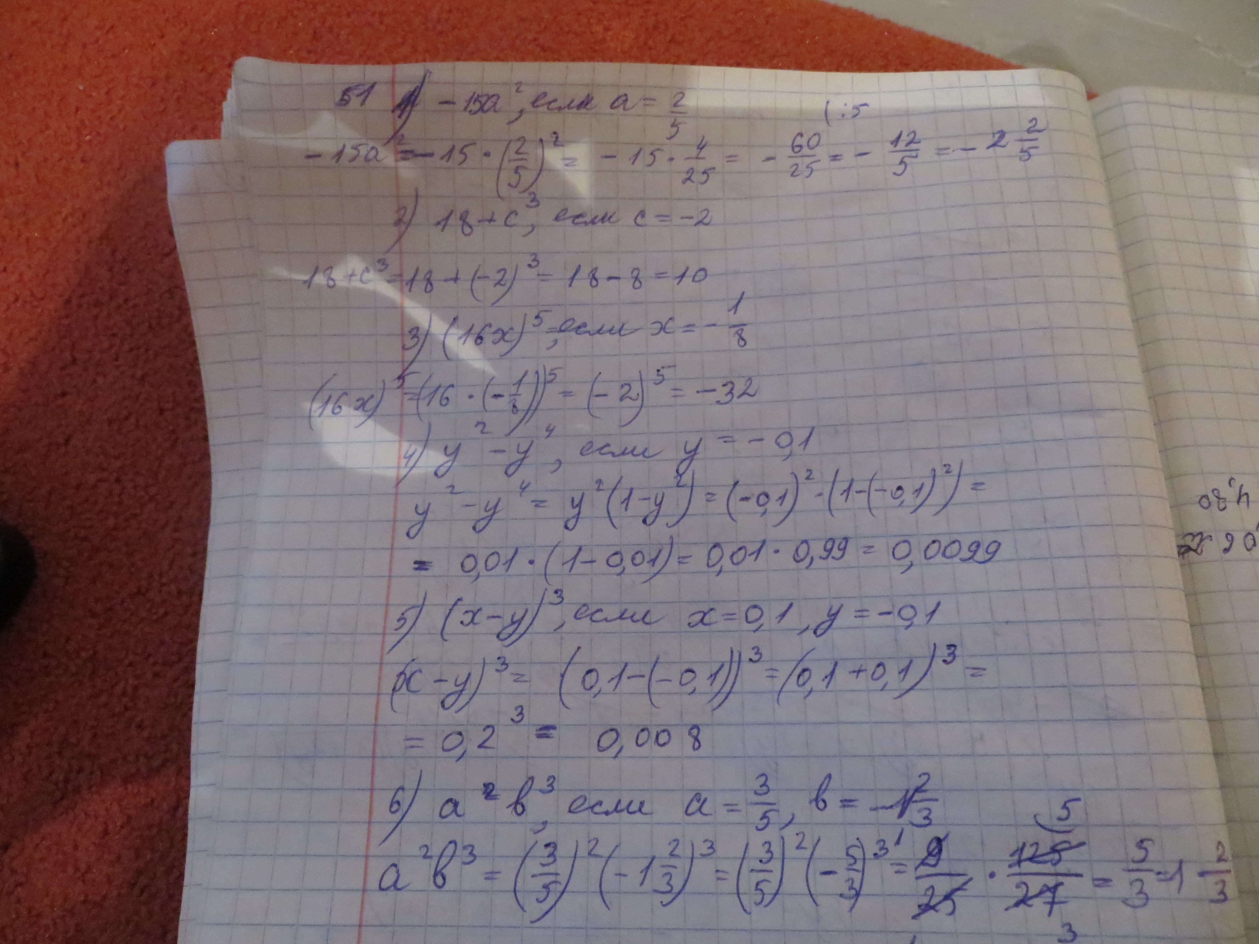 1) -12/5 2) 10 3) -32 4) 0,0099 (99/10000)