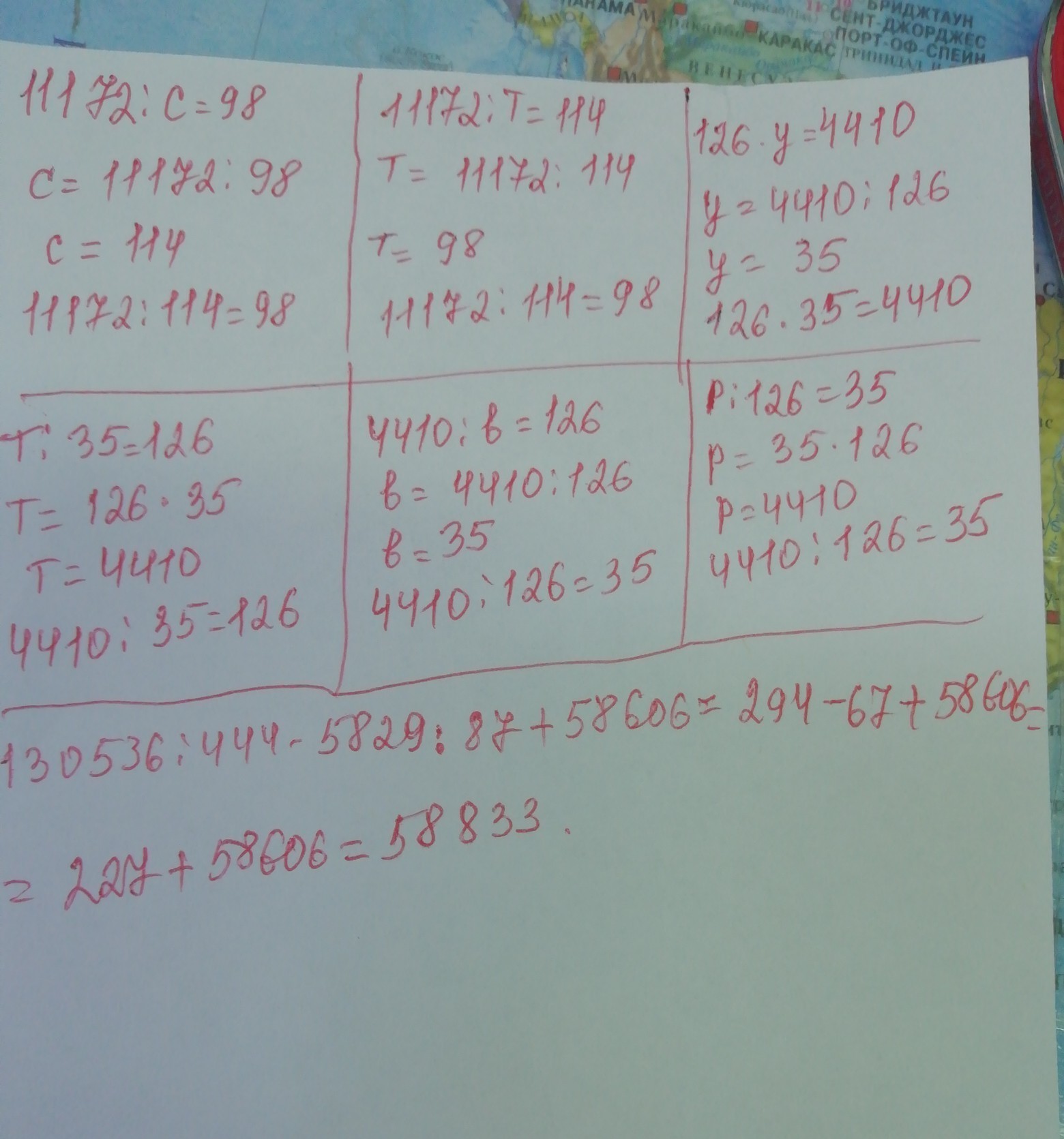 7) 130536:444-5829:87+58606= 294 - 5742 + 58606 = 58900 - 5742 = 53158