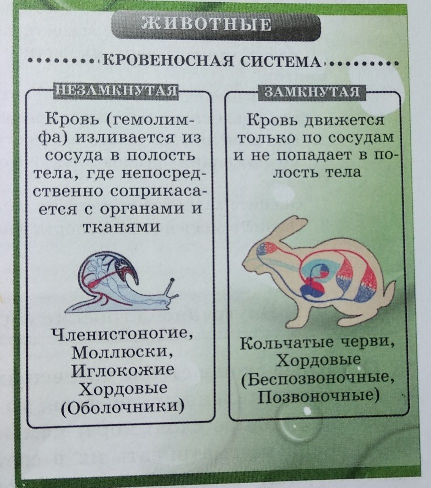 Кровь переносит кислород. Он усваивает в лёгких дыхание. Большая часть веществ выводится через почки в составе мочи и через кожу в состав пота. Если коротко, если у животного незамкнутая кровиносная система, то кровь извлекается из сосуда в полость тела, где непосредственно соприкасается с органами тканями, а если замкнутая система, то кровь движется только по сосудам и не попадает в полость тела.