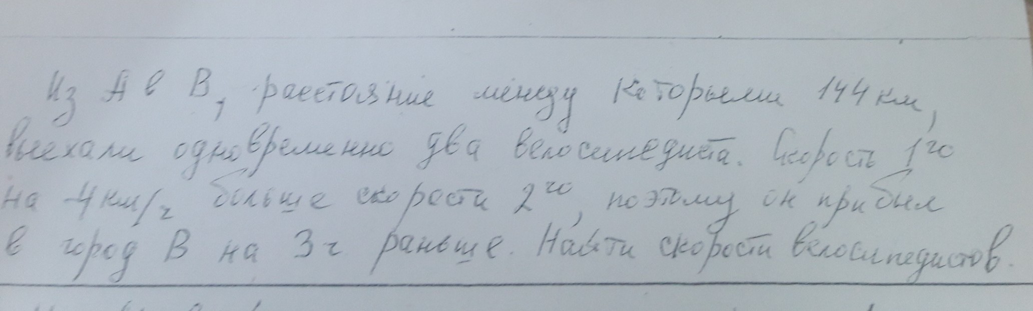 Пусть скорость медленного х, тогда скорость быстрого х+4.