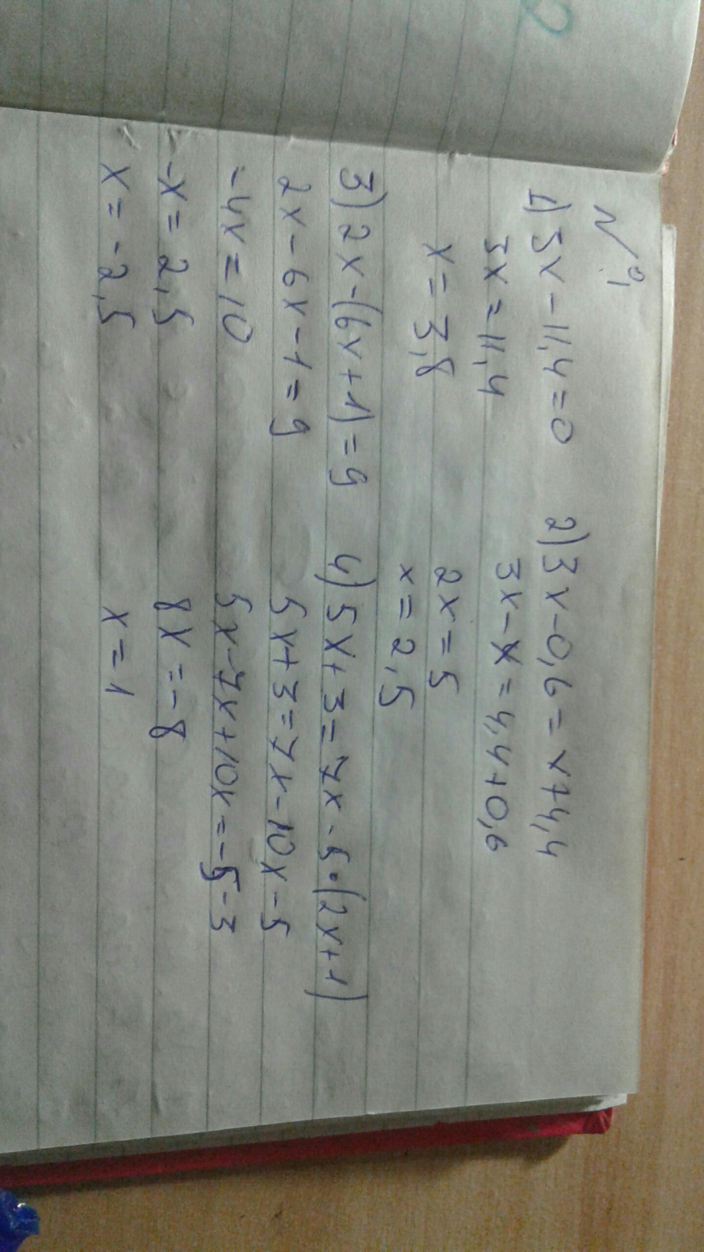 2) 3x-0,6=x+4,4