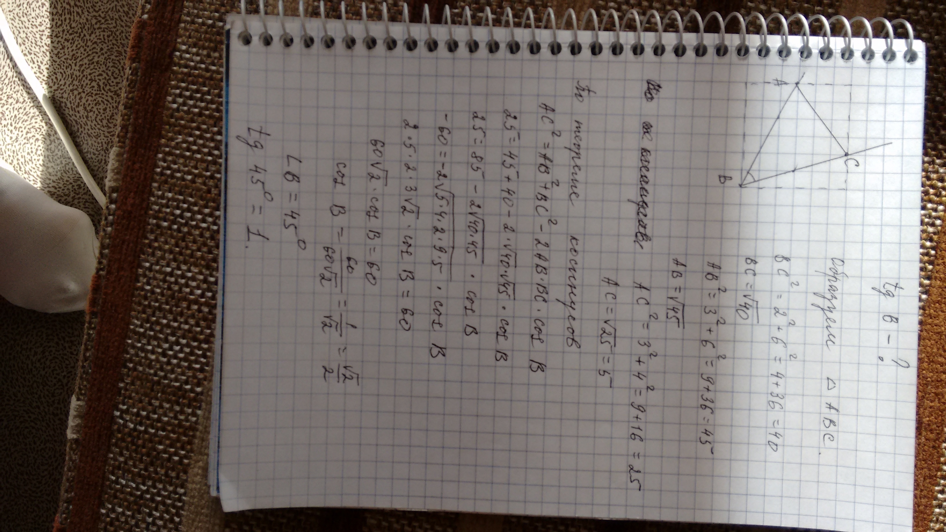 На клетчатой бумаге с размером клетки 1×1 изображён угол.Найдите тангенс этого угла.