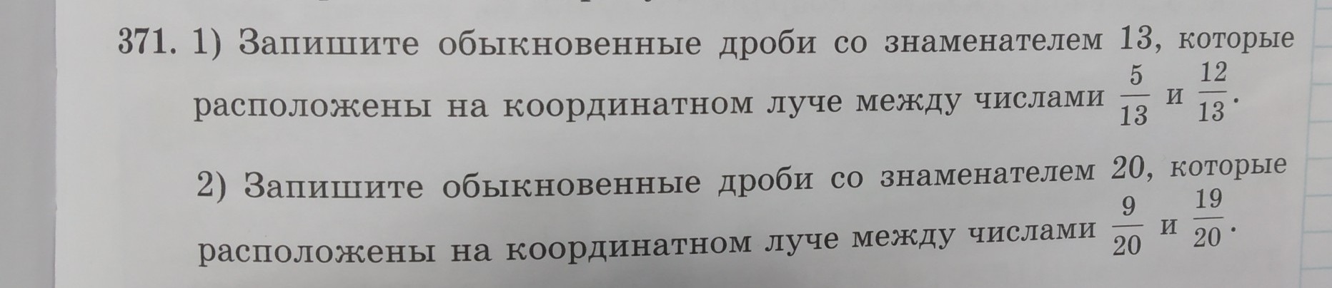 Запишите обыкновенные дроби со знаментателем 13,которые расположены на координатном луче между числами 5/13 и 12/13