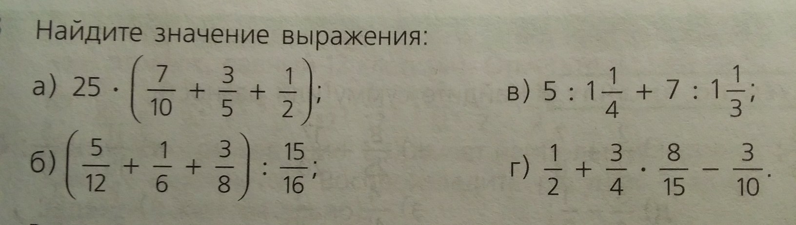 а)25•(7/10+3/5+1/2)=25•(7/10+6/10+5/10)=25•18/10=45