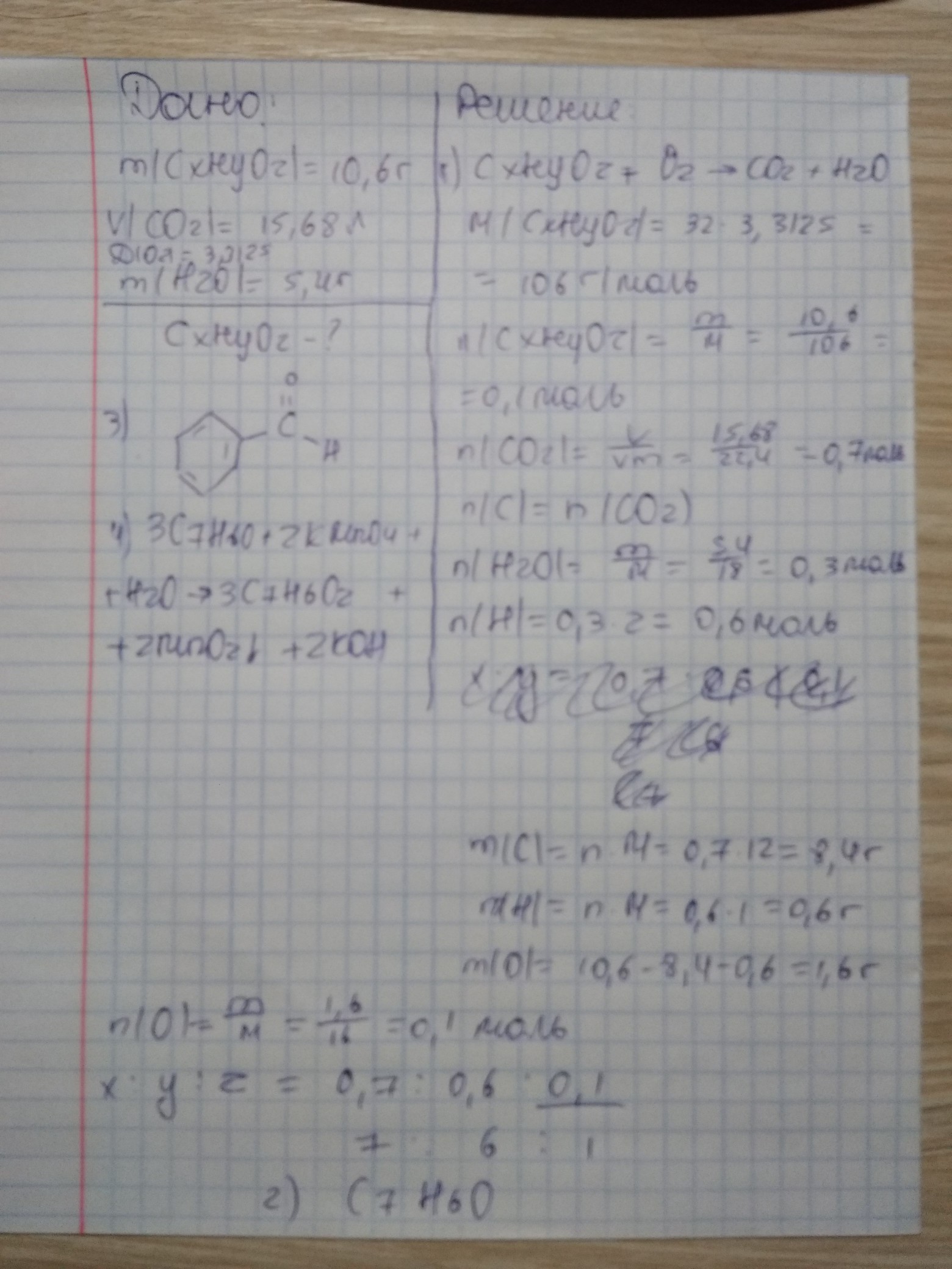 М(С7H6O)=12*7+6+16=84+22=106г/моль