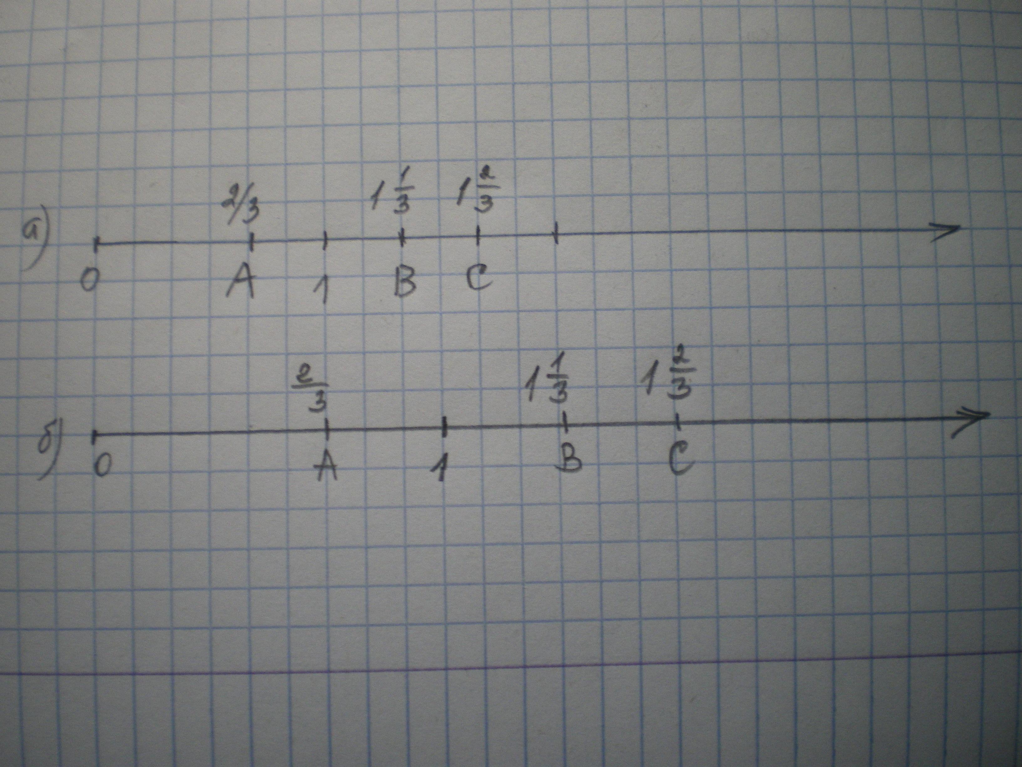 начертите в тетради координатный луч,изображенный на рисунке 3.18.отметьте на нём точки А(23),В(1 13) И С(1 23)