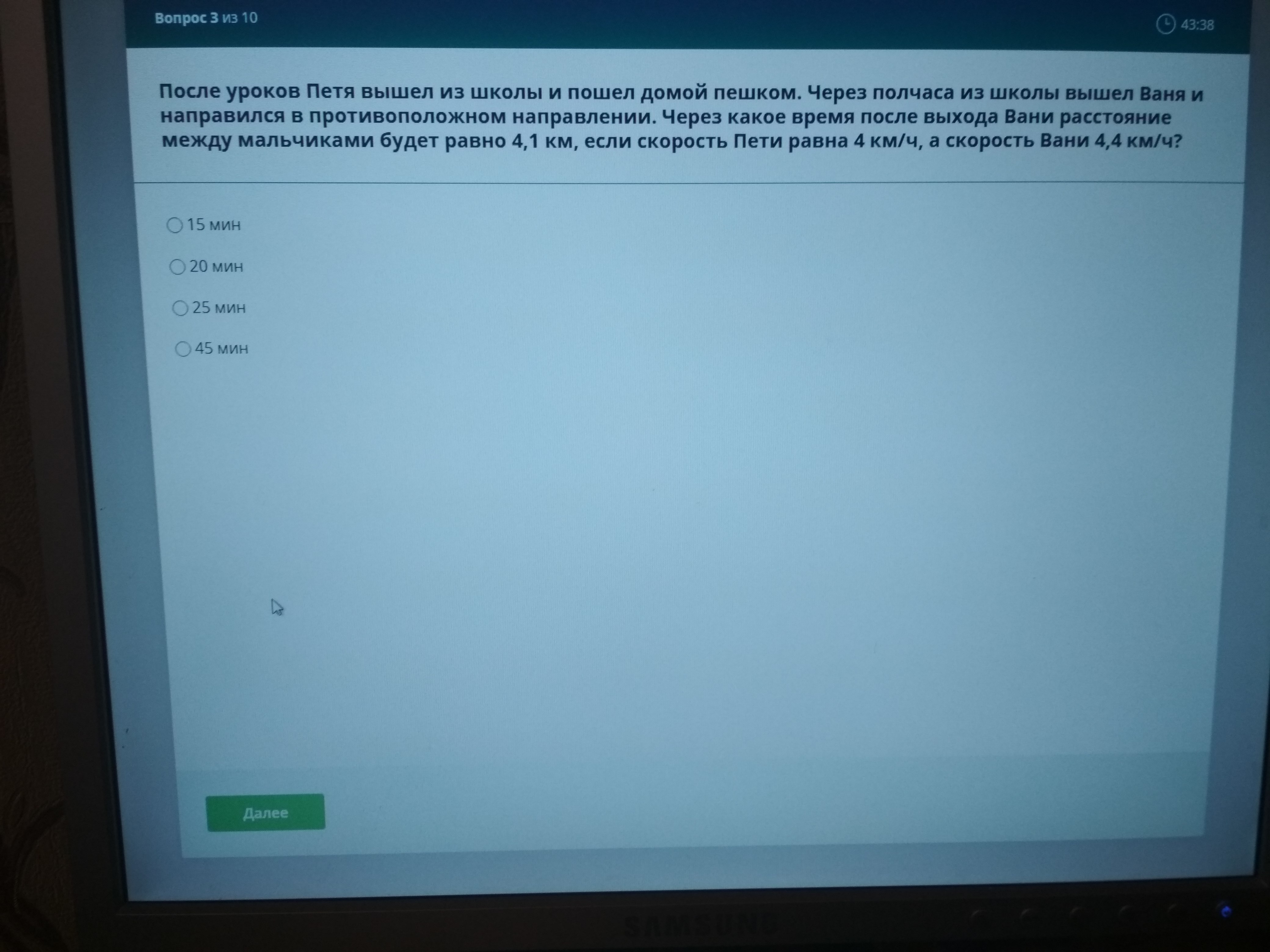 через полчаса вышел Ваня, к тому времени Петя уже удалился на 4*0,5ч=2 км, значит нам надо найти время, когда они удалятся еще на 4,1-2=2,1 км друг от друга
