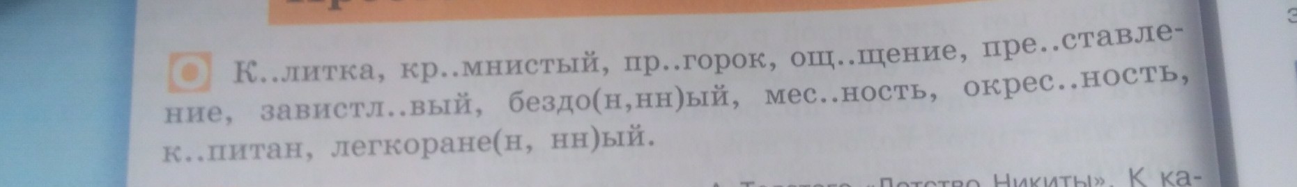 калитка, крамнистый, пр..горок,ощущение, представление,завистливый,бездомный, местность, капитан,легкораненный.