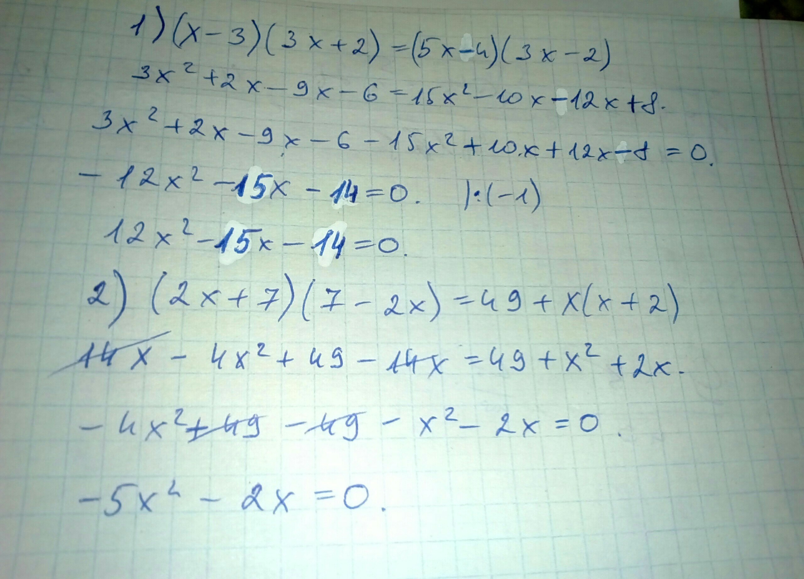 2) (2x+7)(7-2x)=49+x×(x+2)