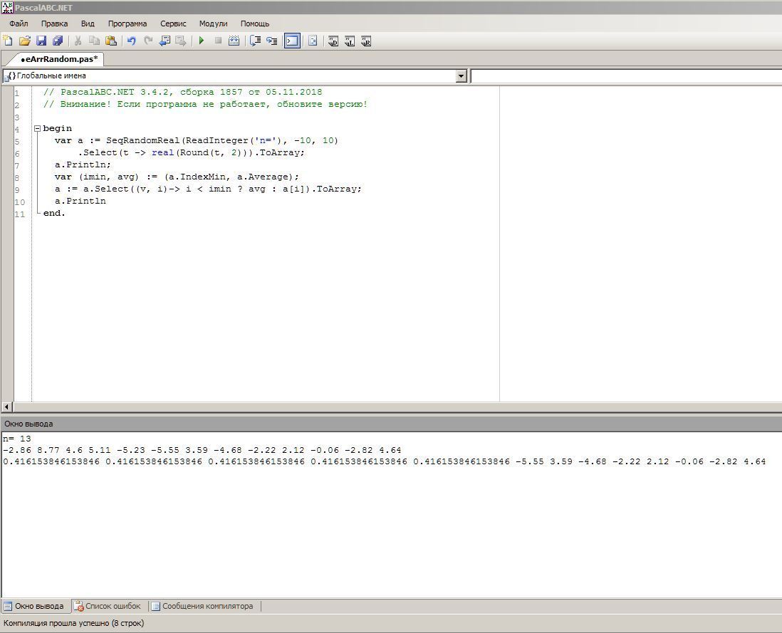 var a := SeqRandomReal(ReadInteger('n='), -10, 10)