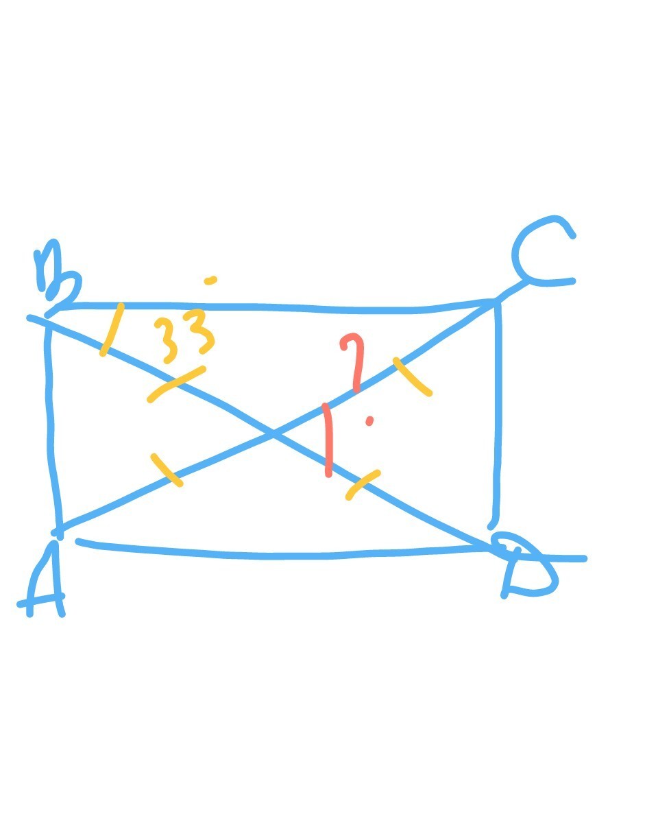диагональ прямоугольника образует угол 33 с одной из его сторон найдите острый угол между диагоналями этого прямоугольника. Ответ дайте в градусах
