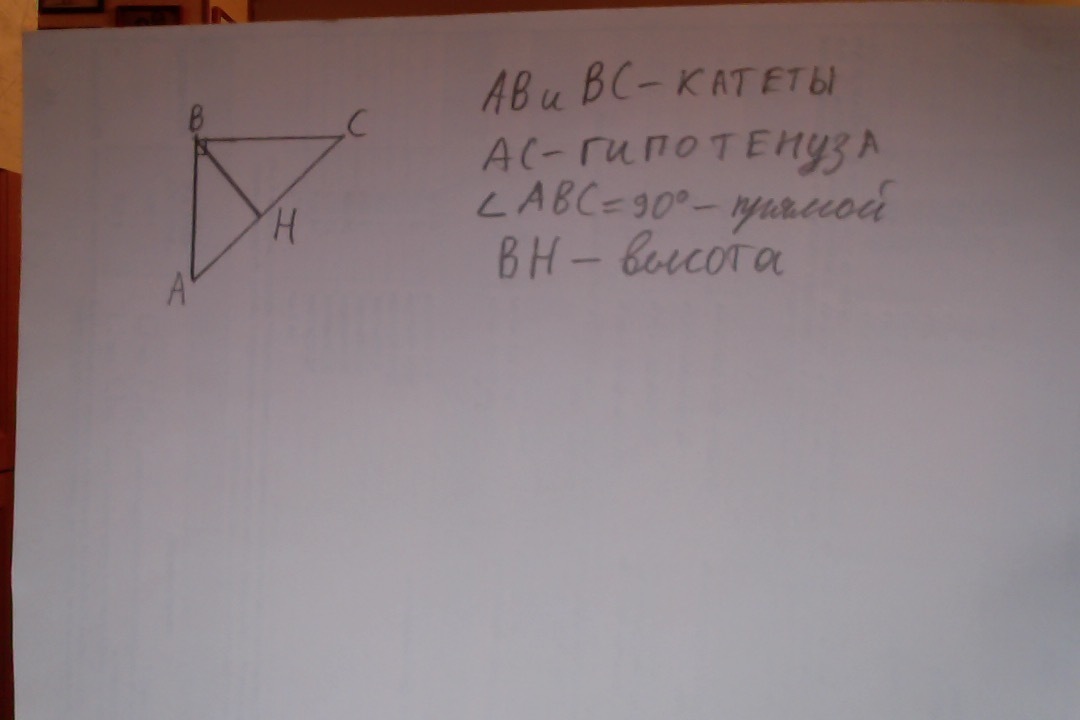 В прямоугольном треугольники укажите катеты и гипатенузу из вершины прямого угла проведите высоту треугольника проведите серединный. Перпендикуляр на катеты прилежащий к углу $нарисуйте$
