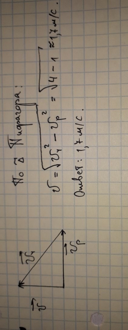 Человек переплывает реку. Скорость человека относительно воды равна 2 м/с, скорость течения реки равна 1 м/с. Найти скорость человека относительно берега