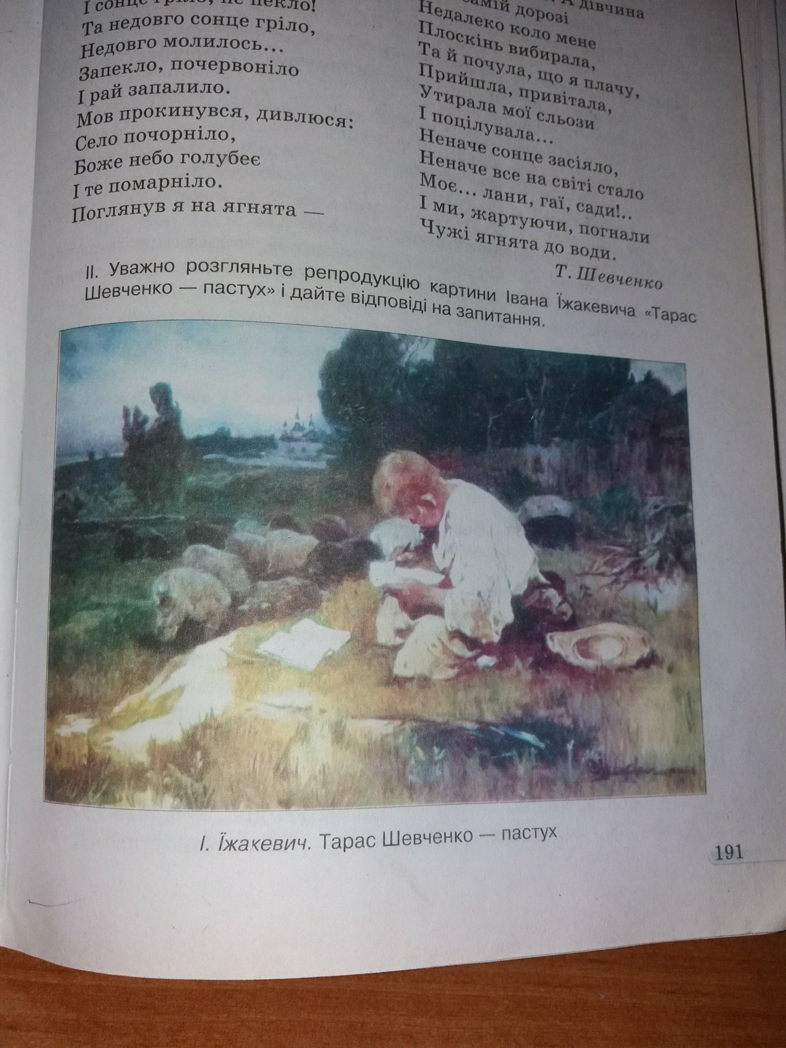 На цій картині, я бачу хлопчика, який щось пише. Хлопчик вдягнений в білу сорочку та штани. Навколо нього гарна природа: дерева, трава. Небо блакитного кольору, а трава - зелена. Позаду дерев видно якийсь замок блакитно- білого кольору.