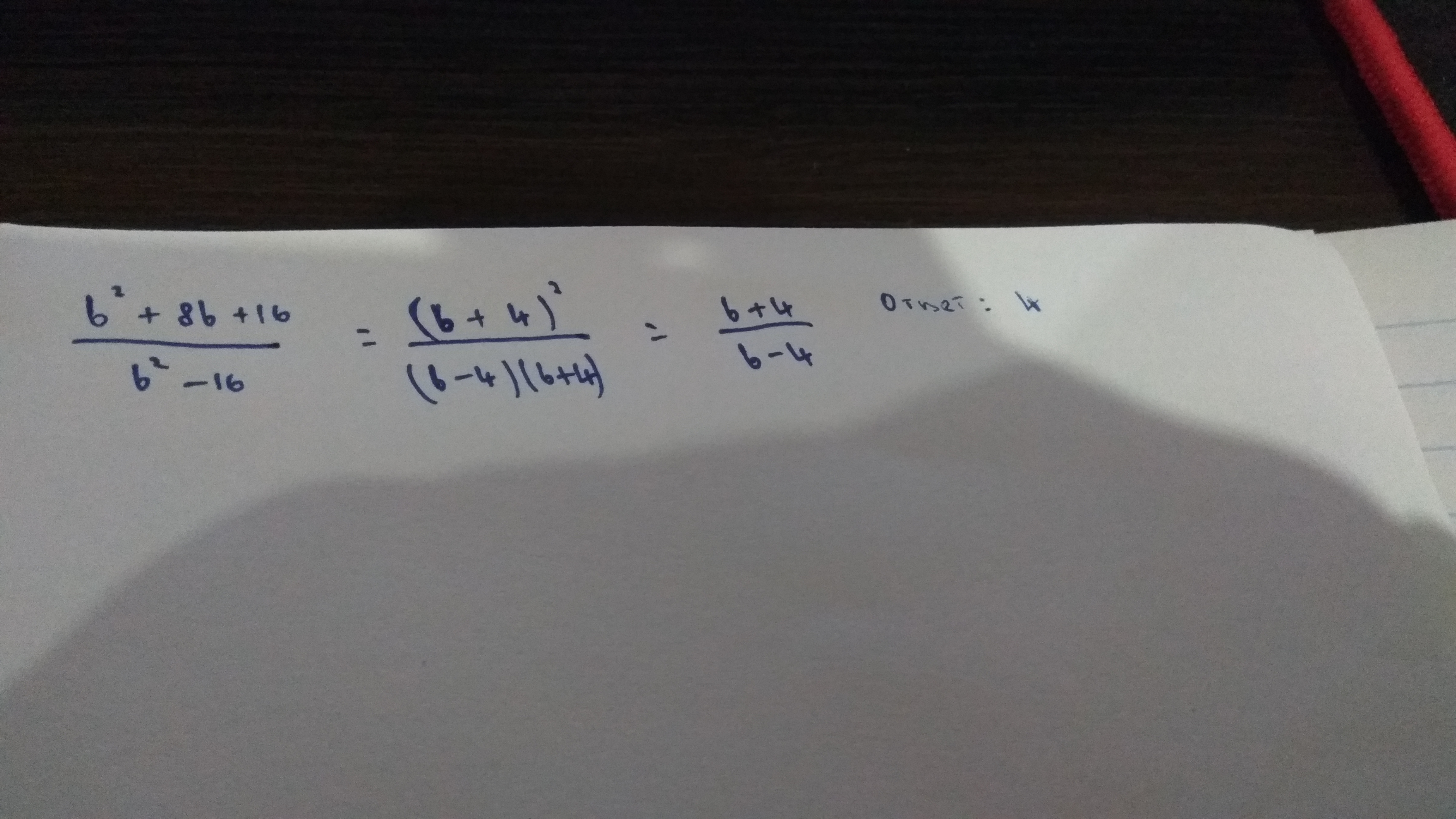 (b^2+8b+16)/(b^2-16) = ((b+4)^2)/((b-4)(b+4)) = (b+4)/(b-4)