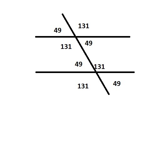 Решение на рисунке, свойство накрест лежащих углов, а так же смежные и вертикальные углы.